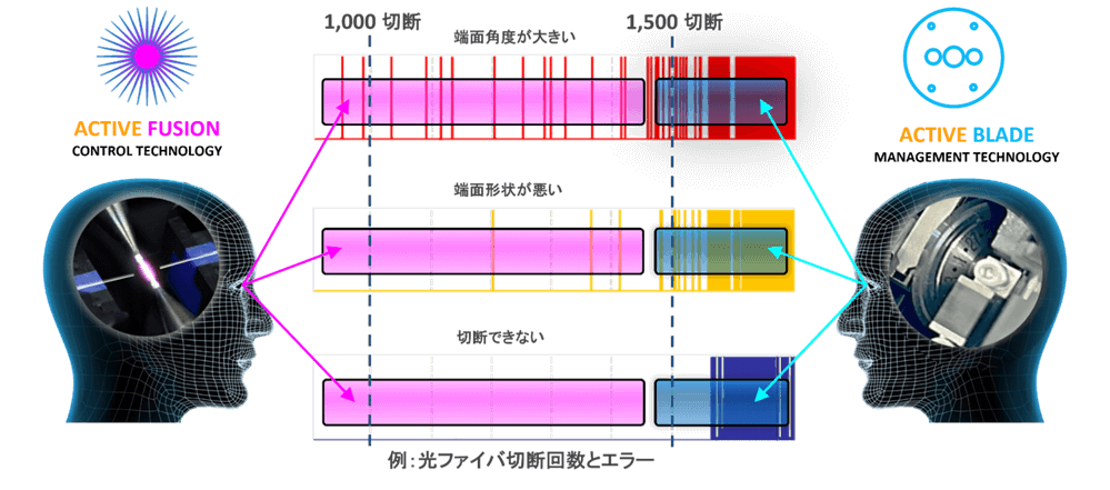 Active Blade Management TechnologyとActive Fusion Control Technologyを一緒にご使用いただくことで、高い接続損失の発生を減らし、融着接続作業のやり直しを最小限に抑えることが可能です。