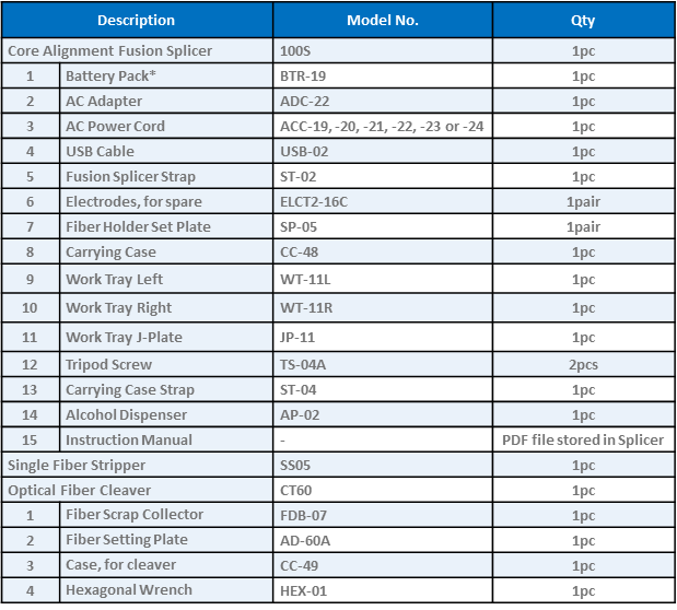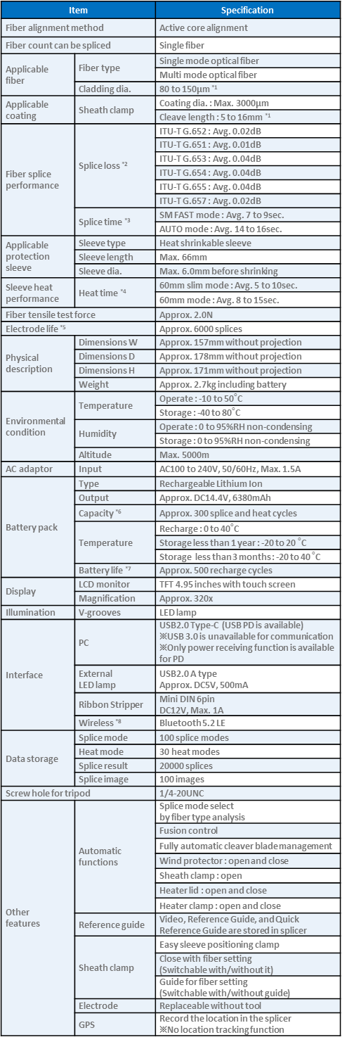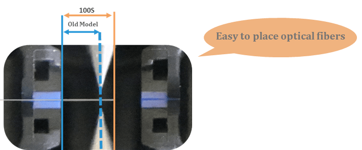 The 100S fusion splicer can minimize the occurrence of high splice loss and contribute to reduce the risk of re-Installation by using these 2 key technologies together.