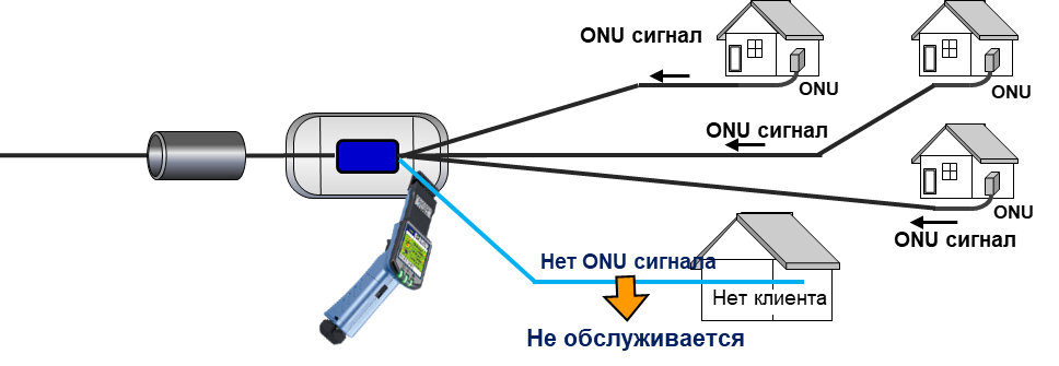 ONU сигнал можно определить, не отсоединяя волокно. Оператор может определить нужное волокно, не посещая клиента.
